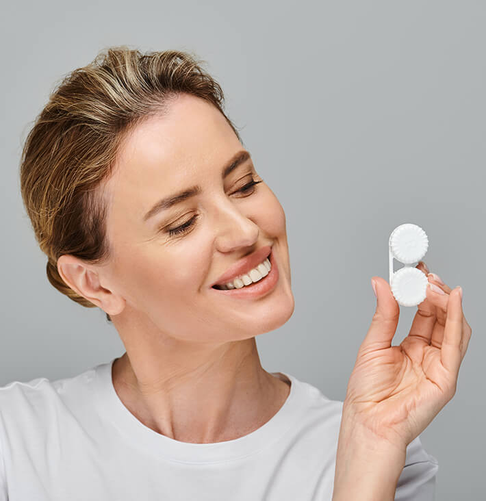 When you come to pick up your contact lenses, we’ll assess the fit and teach you how to care for your new lenses. Depending on whether you’ve chosen daily disposable or rigid gas-permeable lenses, you may need to clean them each night in a contact lens solution.